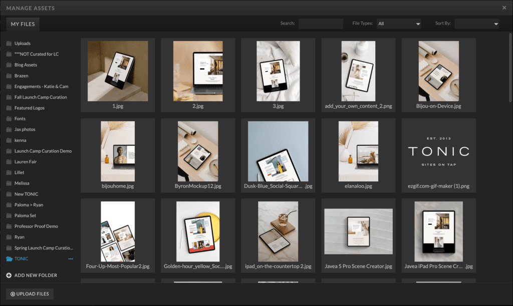Then, once you’re ready to add them to your website, you can upload them to Showit’s media library, where you’re able to neatly organize them into folders.