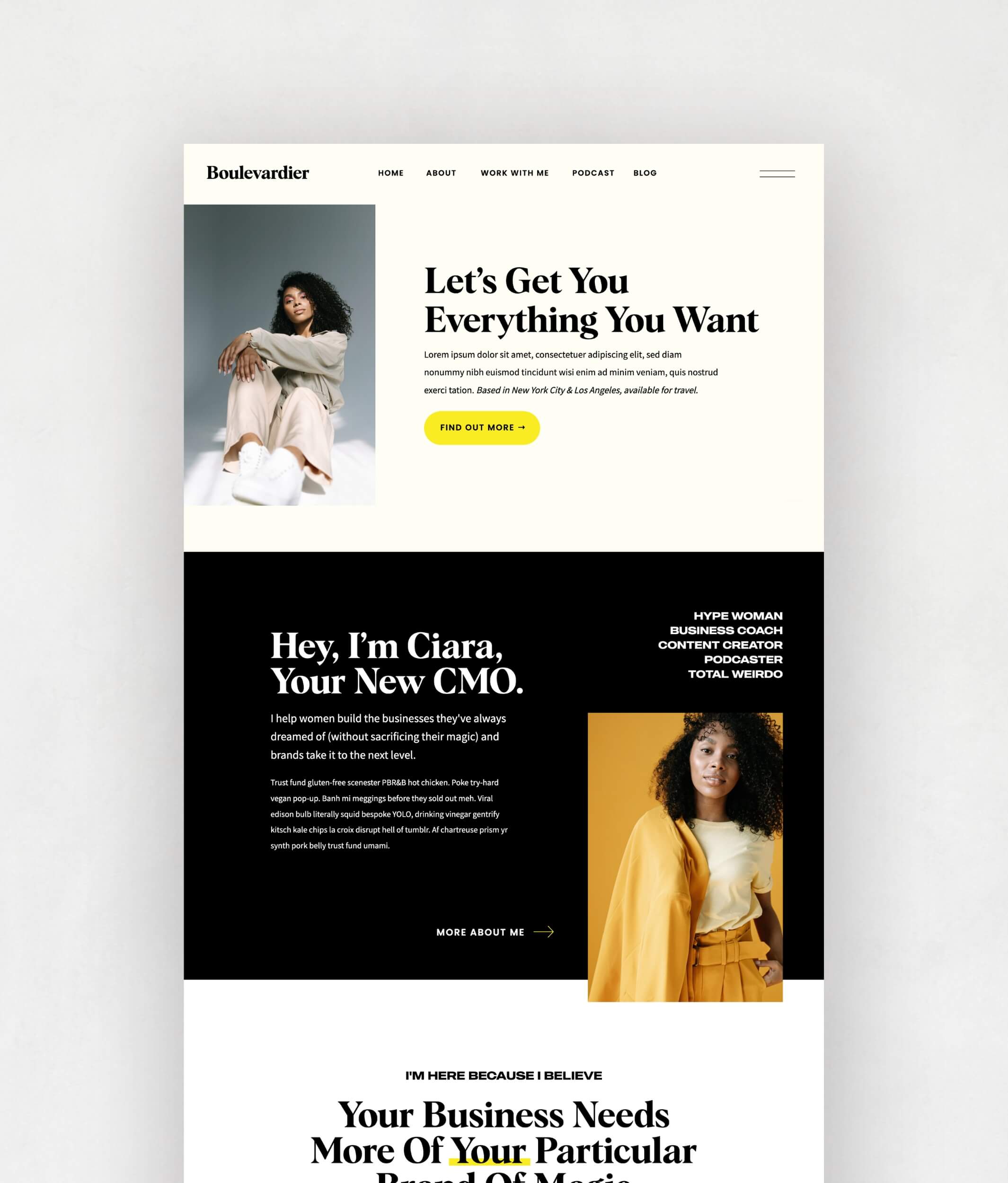Like a fresh-off-the-runway fit, our Boulevardier is a high-impact stunner with bold, powerful, standout vibes and edgy, editorial design. Guaranteed to garner an “Oh wow, this is COOL,” she’s the perfect pick for coaches, personalities, marketing and branding experts, and anyone ready to turn heads and convert like a boss.