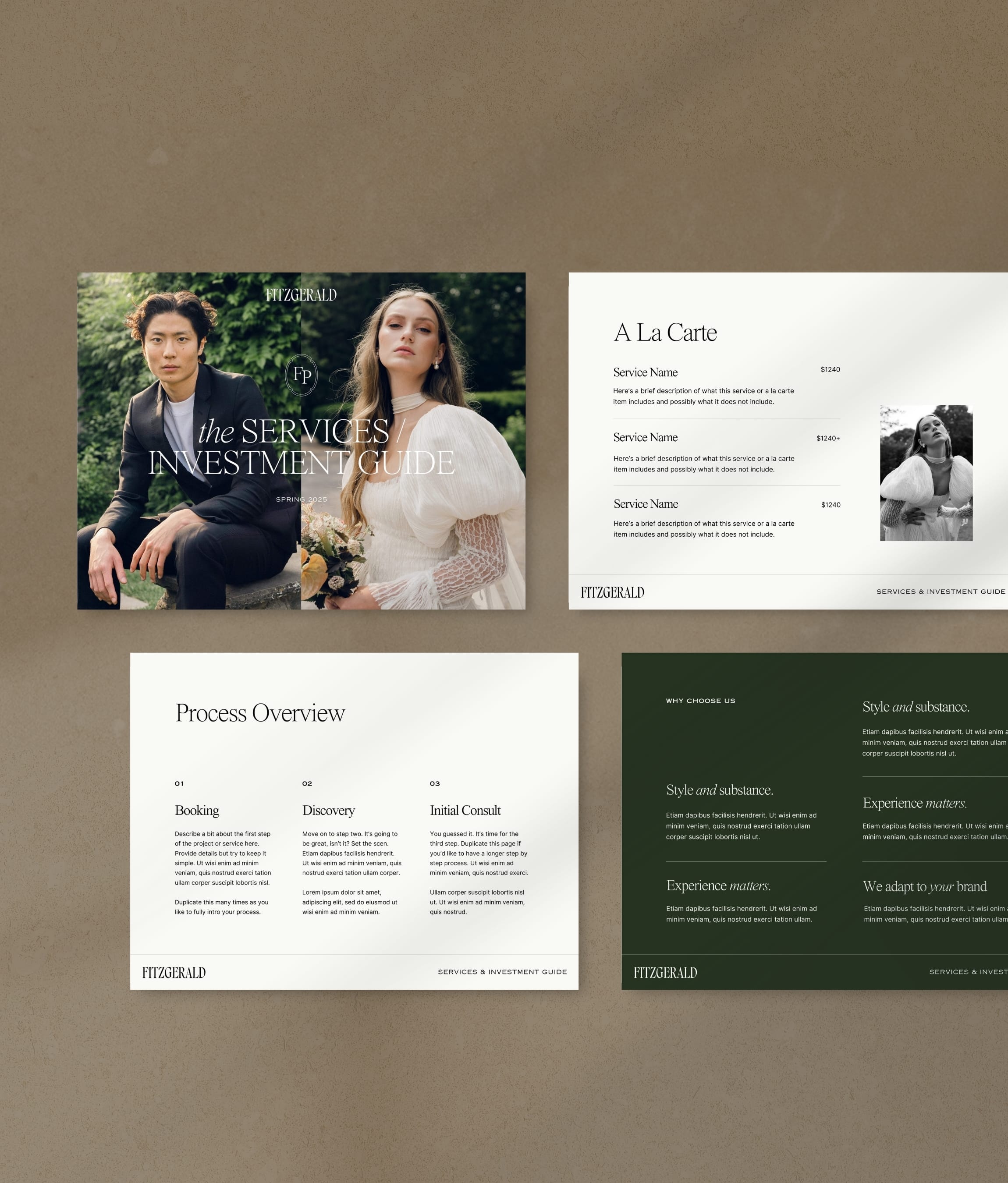 Transform initial inquiries into take-my-money repeat customers with the Pricing & Service Guide for Canva. This invaluable guide establishes your credibility, sets expectations, and encourages potential clients to take the next step with YOU. (It also vets your leads, saving you time with tire-kickers!)