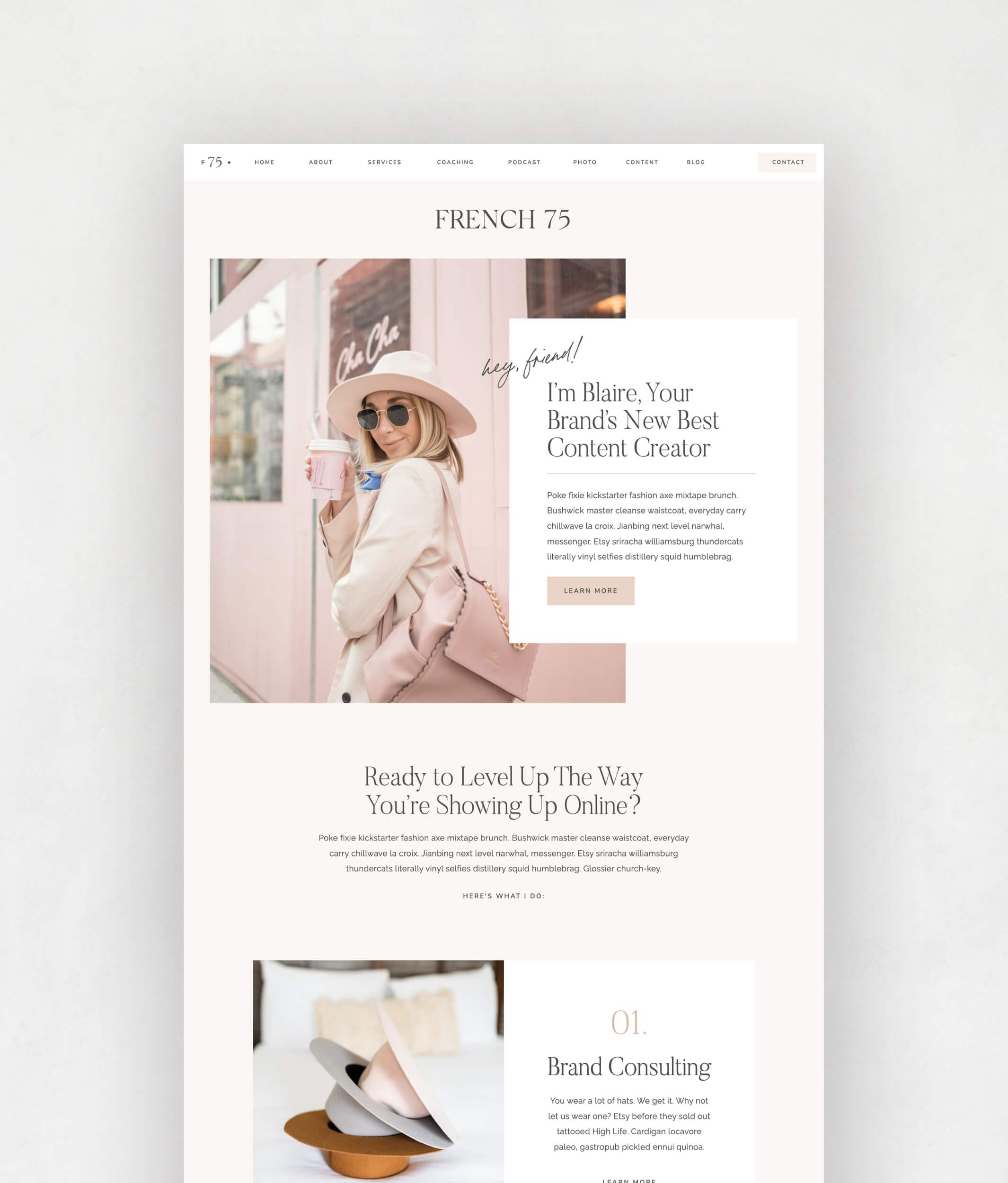 Beauty and grace, she’s all class and feminine strength. Our French 75 template is perfect for any coach, podcaster, creative brand, or small business.