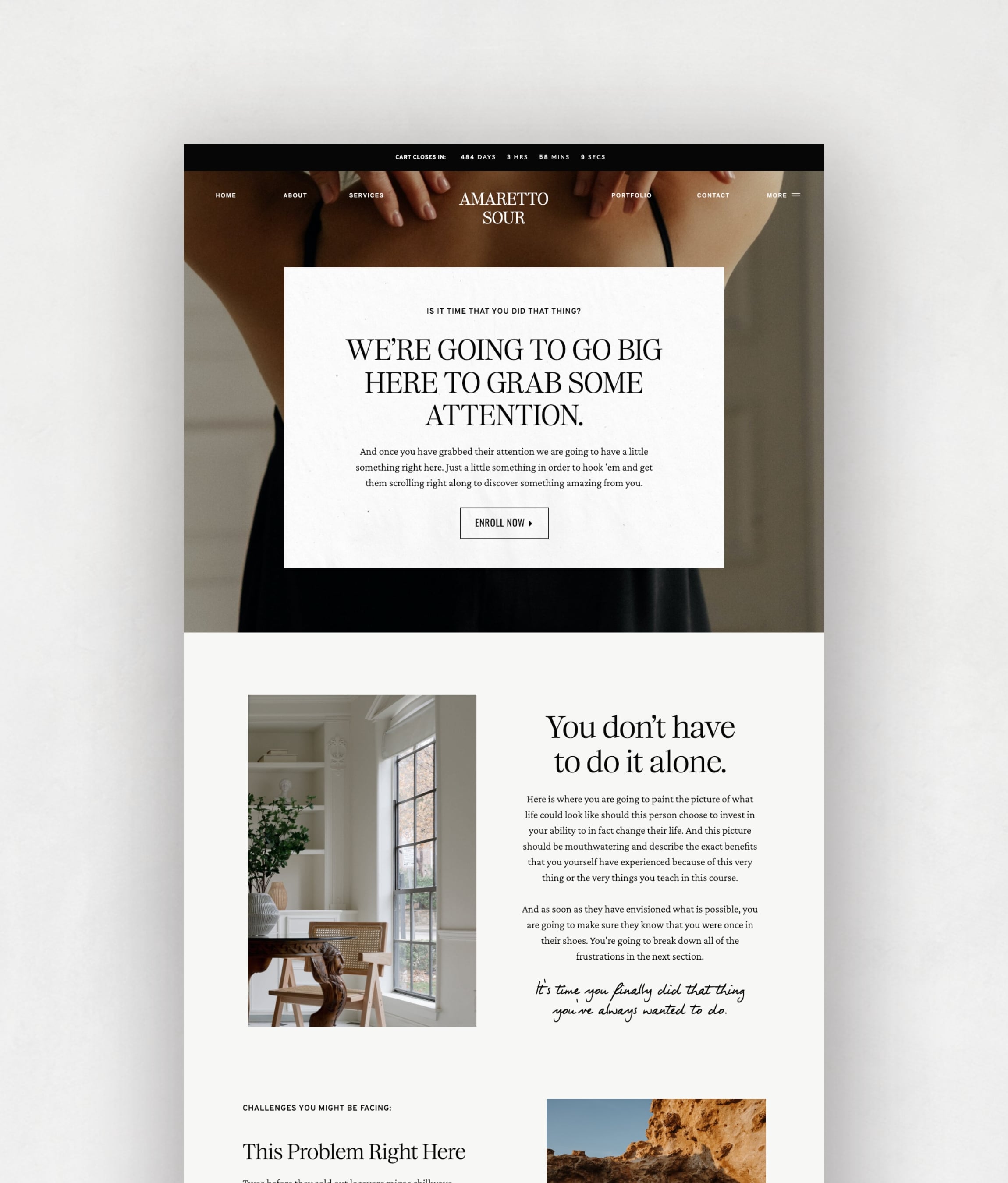 Each of our website templates come with 6 core pages: home, about, services, portfolio, contact, and opt-in. From there, we include a number of extras, depending on the product price — some have up to 15 pages!