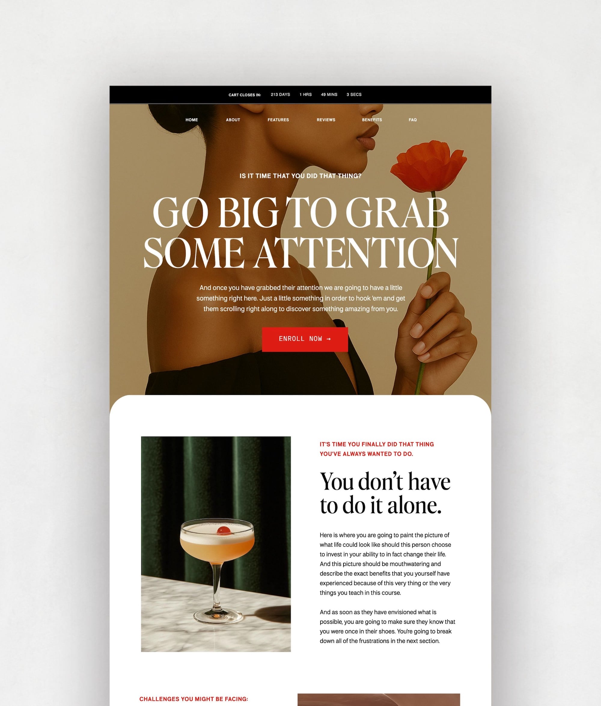The secret weapon of TONIC sites? The sales strategy we bake into every template. With copy prompts and CTAs galore, they're proven to look beautiful AND convert.